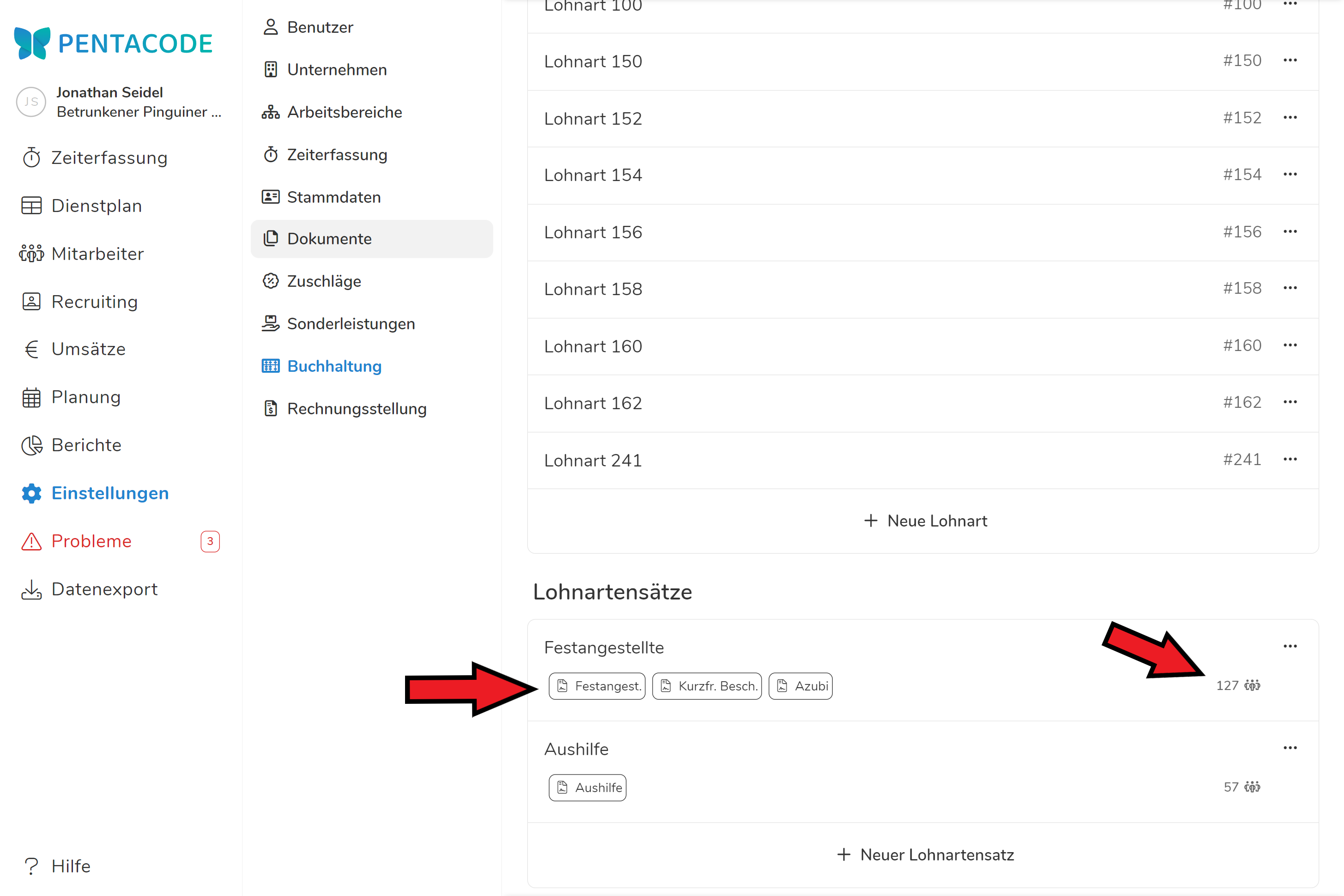 Wenn Sie es sich so einfach wie möglich machen wollen, empfehlen wir Ihnen im ersten Schritt in Absprache mit ihrer Buchhaltung alle von Ihnen verwendeten Lohnarten in Pentacode anzulegen.